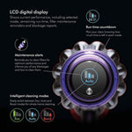 The Dynamic Load Sensor (DLS) system optimizes cleaning performance by automatically shifting the motor speed between surfaces, providing deep cleaning on carpets and gentle care on delicate hard floors. The vacuum features a LCD screen that displays real-time information, including run time countdown and performance metrics, giving you complete control over your cleaning session. Easily switch between Eco, Auto, and Boost modes for tailored power, while the fade-free battery offers up to 60 minutes of cordless cleaning.