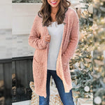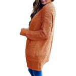 Experience unparalleled comfort and effortless style with our Women's Long-Sleeved Soft Chunky Knitted Sweater. Crafted from high-quality 100% polyester, this cozy cardigan is perfect for cooler days, providing exceptional warmth without sacrificing style. The plush, popcorn yarn material offers a luxurious feel against your skin, making it your go-to piece for everyday wear.